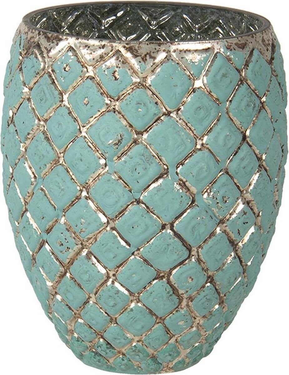 Clayre & Eef Vaas Ø 18x14 cm Turquoise Glas Rond Glazen Vaas