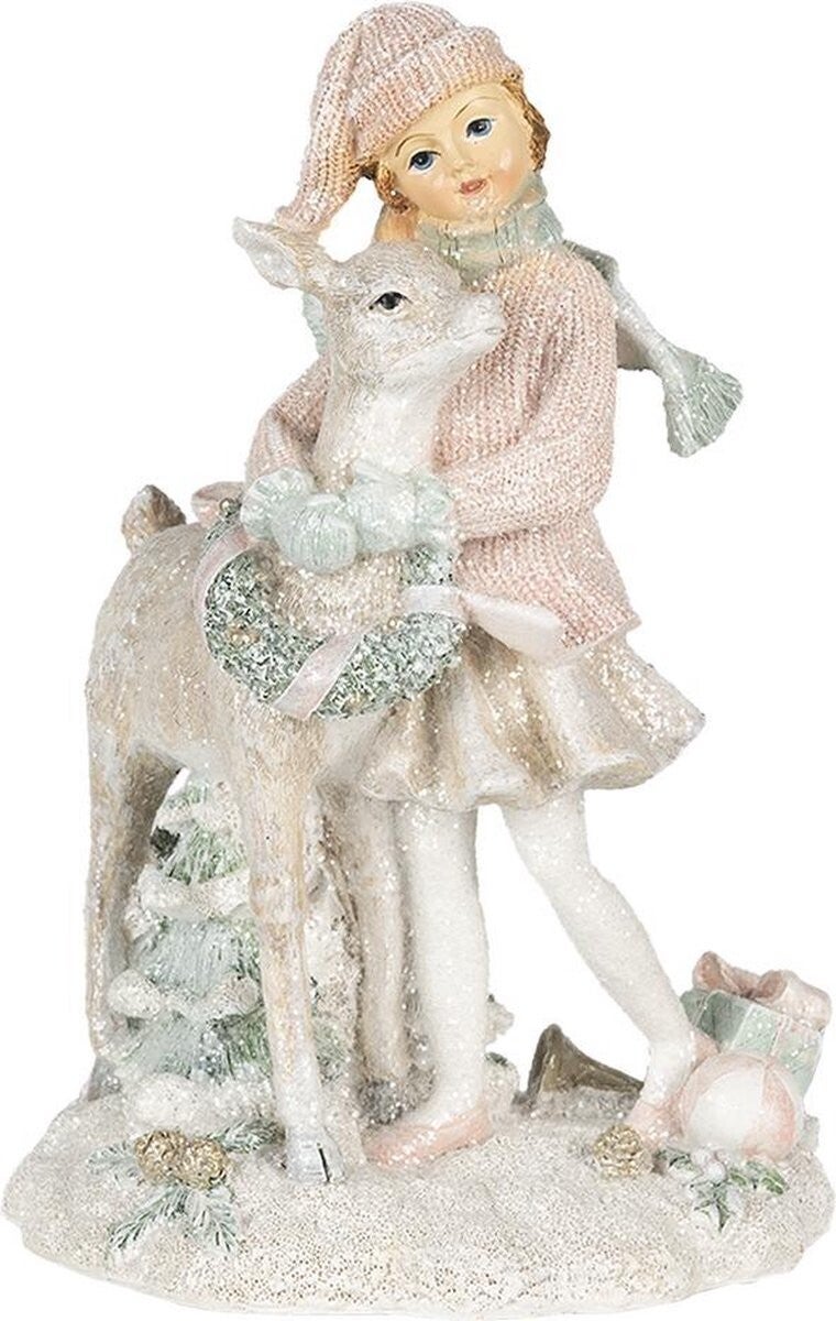 Beeld Kind 13x10x20 cm Wit Roze Polyresin