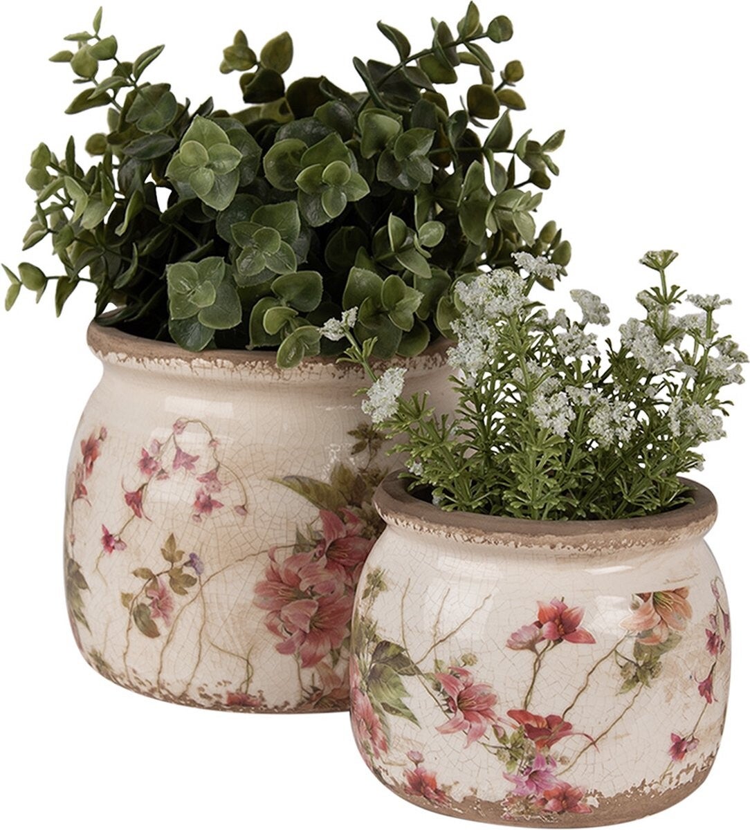 Clayre & Eef Bloempot Ø 16x13 cm Beige Roze Keramiek