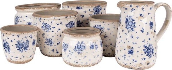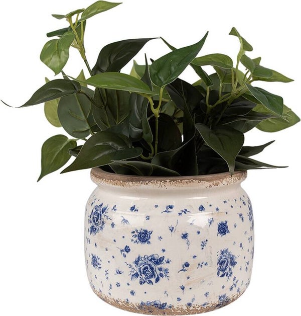 Clayre & Eef Bloempot Ø 20x15 cm Beige Blauw Keramiek