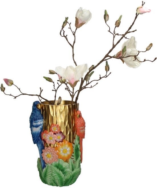gouden vaas met gekleurde parkieten 20 x 17 x 30 cm