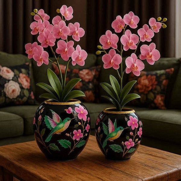 Deze unieke vaas van het merk Colmore voegt een luxe en stijlvolle touch toe aan elke ruimte. fleurig en opvallend met zijn bloemenmotief en vogel, ideaal voor bloemen of als op zichzelf staande decoratie. Deze prachtige vaas heeft meerdere kleuren, waardoor het bij ieder interieur straalt. deze vaas is handbeschilderd door middel van een enamel laag over de vaas.