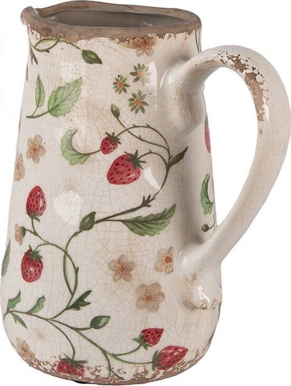 Decoratie Kan 16x12x18 cm Beige Rood Keramiek Aardbeien Schenkkan