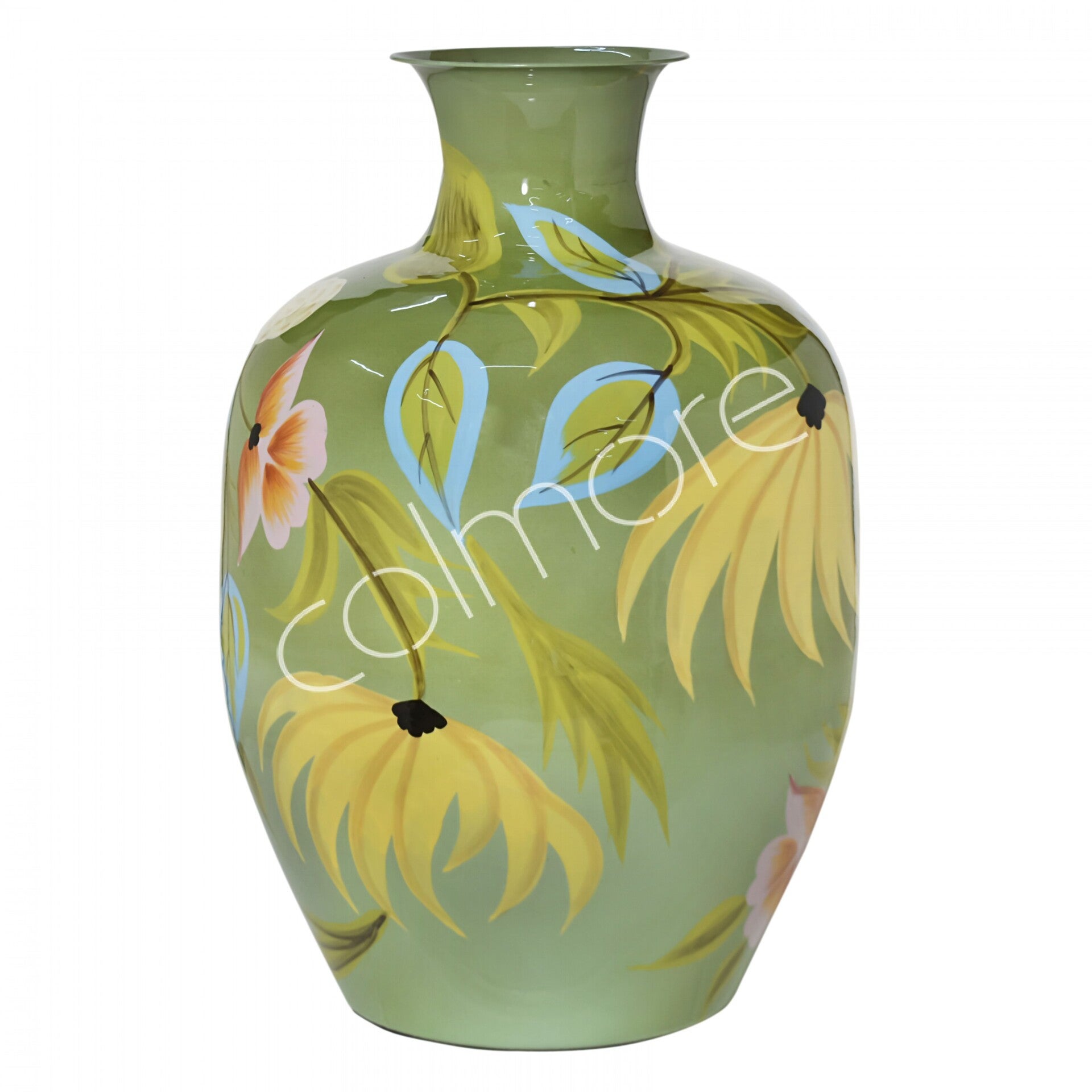 Deze unieke vaas van het merk Colmore voegt een luxe en stijlvolle touch toe aan elke ruimte. fleurig en opvallend met zijn bloemenmotief, ideaal voor bloemen of als op zichzelf staande decoratie. Deze prachtige vaas heeft meerdere kleuren, waardoor het bij ieder interieur straalt. deze vaas is handbeschilderd door middel van een enamel laag over de vaas.