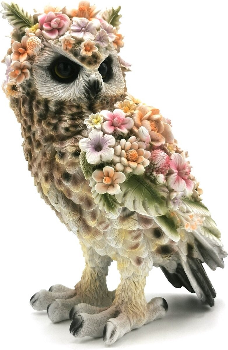 Decoratie Beeld uil 21x18x31cm multicolor Bloemen