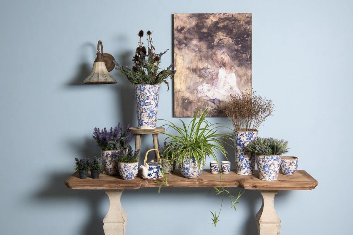 Blauw met beige klassieke bloempot met bloemen van het merk Clayre & Eef.