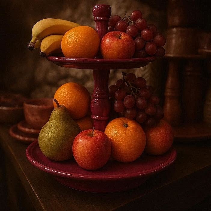 Deze kunstzinnige Etagerre "Uniek by Colmore" 2 laags is uitgevoerd in het donkerpaars/fuchsia. deze prachtige etagere zal een blikvanger zijn in uw inrichting.