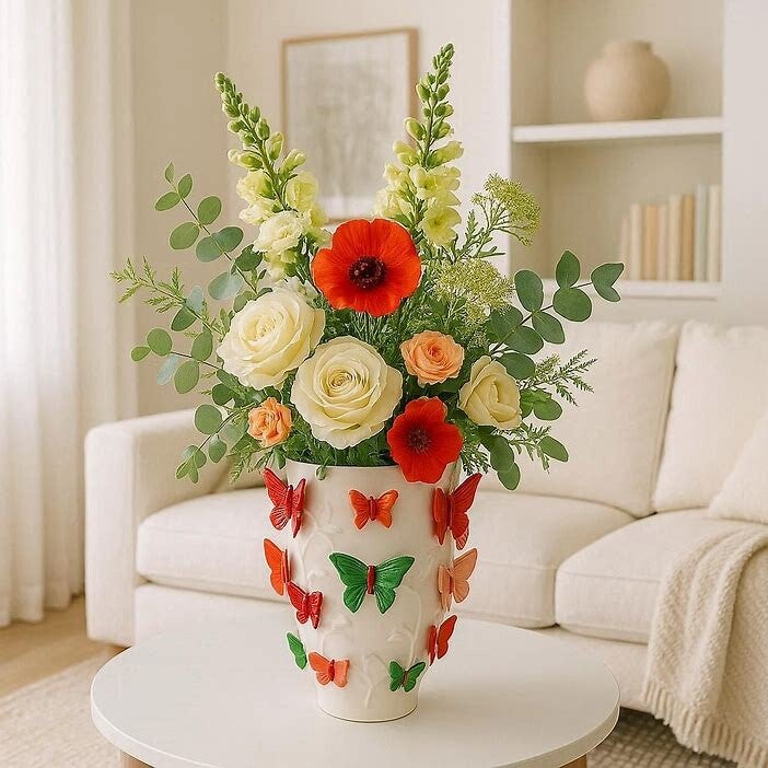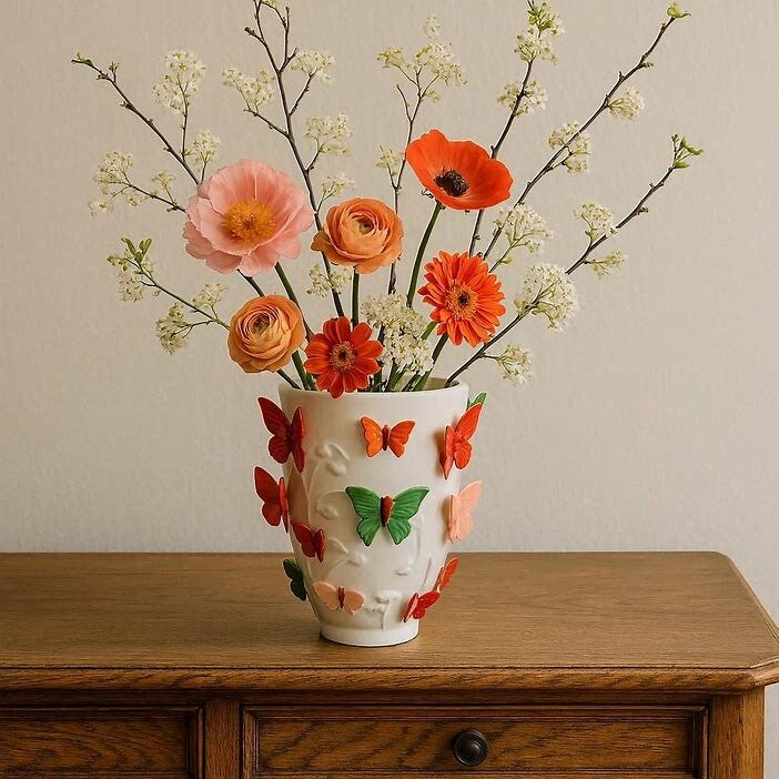 Een grotere vlinder-vaas van steengoed in meerdere kleuren, ideaal voor een opvallend bloemstuk.deze decoratieve vaas is de nieuwe je-van-het! Het is stijlvol en uniek op zijn eigen manier. Je kunt er leuke droogbloemen in plaatsen of simpelweg leeg laten.
