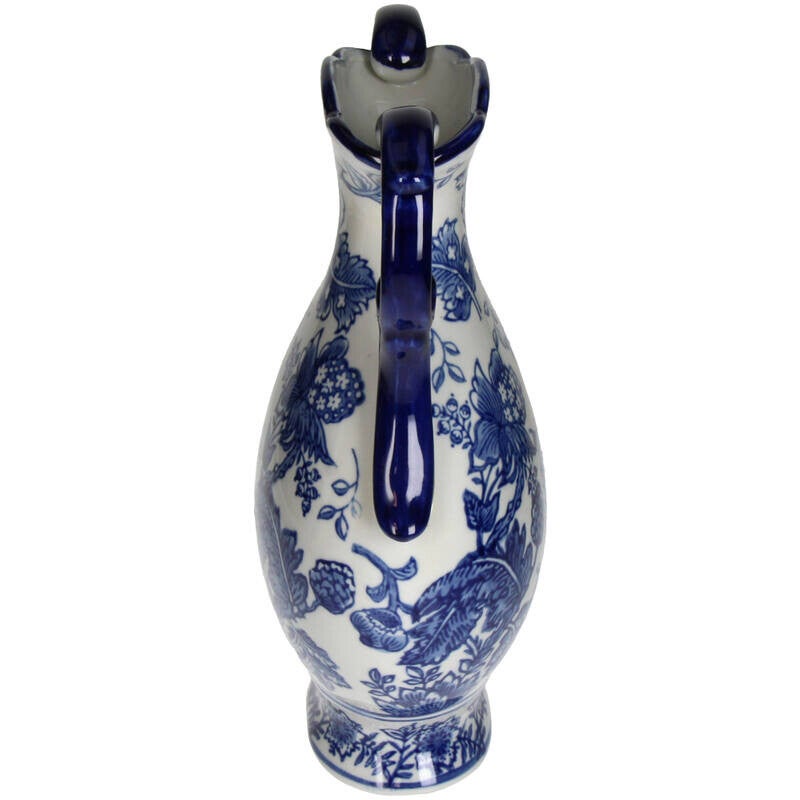 Blauwe porseleinen vaas van 19.5x12.5x31.5cm. perfect voor een stijlvolle en kleurrijke toevoeging aan je woning. deze vaas is prachtig bewerkt met een bloemenmotief en de klassieke grepen maken het geheel compleet.