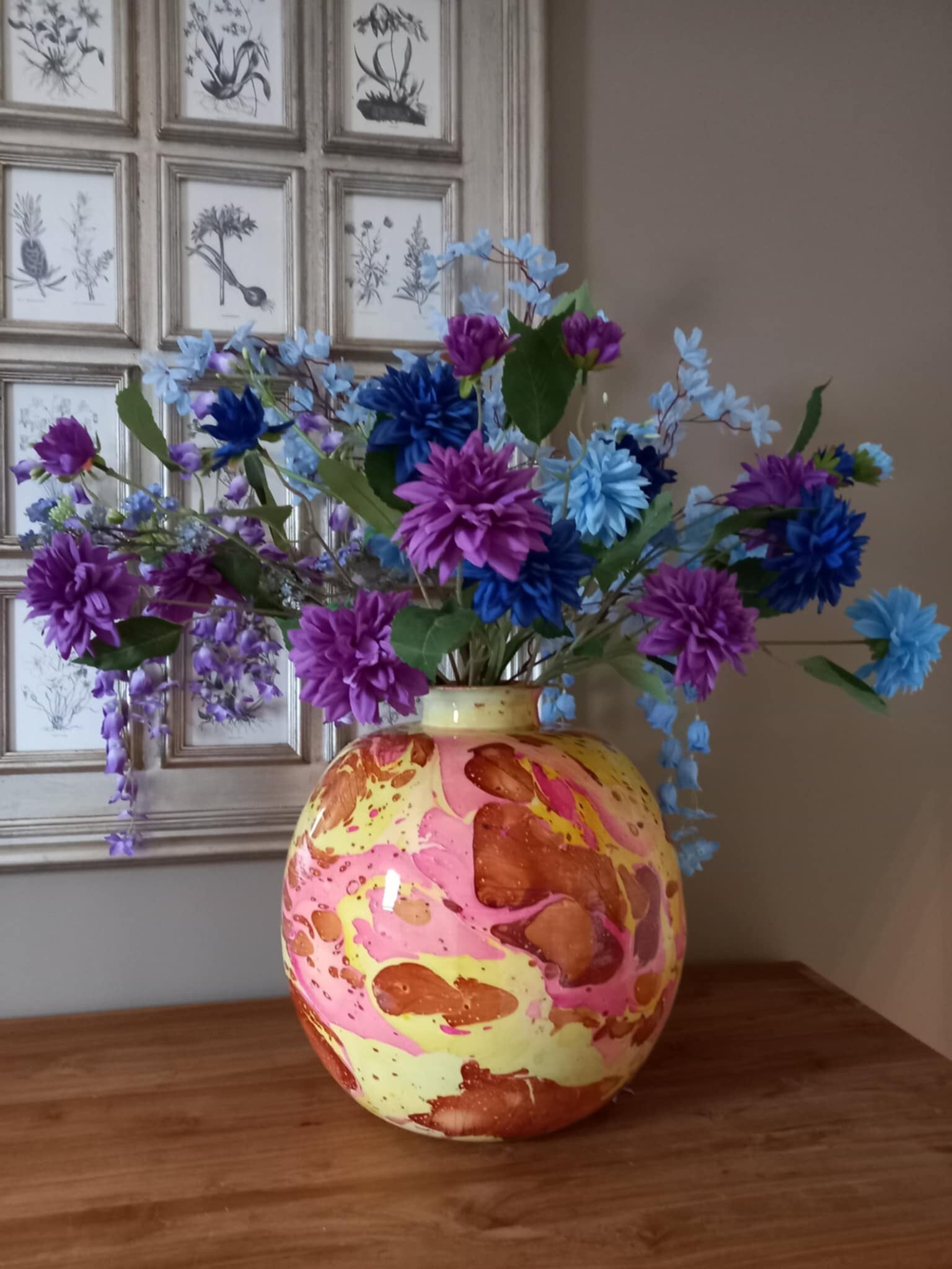 Deze unieke vaas van het merk Colmore voegt een luxe en stijlvolle touch toe aan elke ruimte. fleurig en opvallend met zijn motief, ideaal voor kunstbloemen of als op zichzelf staande decoratie. Deze prachtige vaas heeft meerdere kleuren, waardoor het bij ieder interieur straalt. deze vaas is beschilderd door middel van een enamel laag over de vaas.