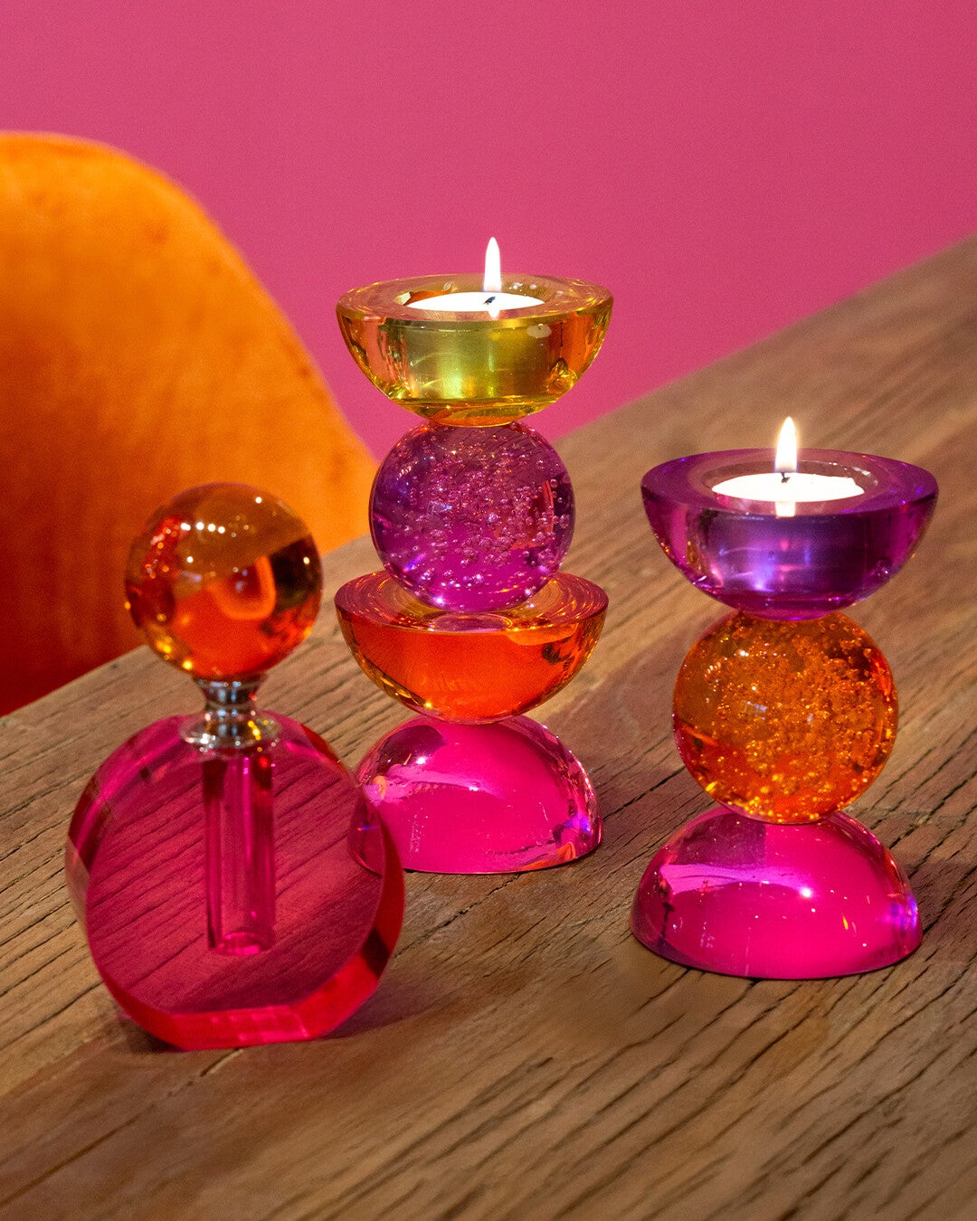 Upgrade jouw huis met onze betoverende kaarshouder van kristalglas. Met sprankelende kleuren en prachtig geslepen glas voegt deze kaarsenhouder glamour toe aan elk interieur. met andere woorden: een unieke kandelaar voor iedere gelegenheid. ook mooi om te combineren met andere kaarsenhouders uit dezelfde serie.