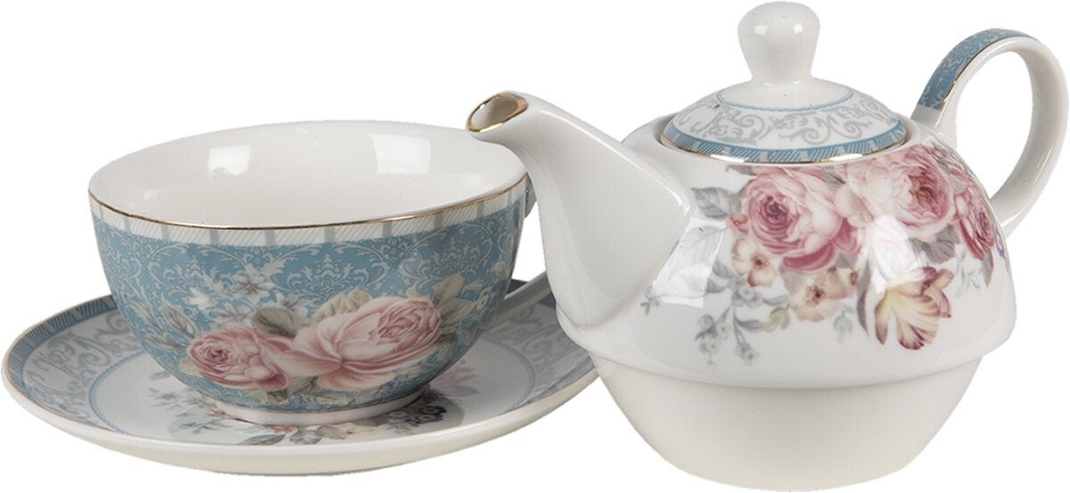 Klassiek landelijk tea for one blauw/wit gekleurd van het merk Clayre & Eef.