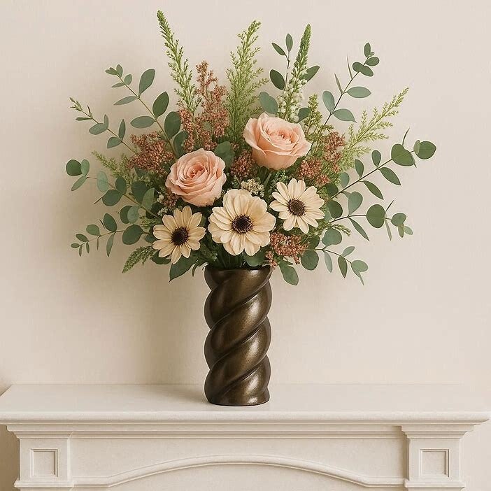 Prachtige Colmore by Diga Vaas Loes raw aluminium metallic brown. deze speelse vaas kan je mooi aankleden met kleurrijke droogbloemen. Deze vaas heeft een luxe uitstraling waardoor het echt onmisbaar is in je interieur. De vaas is zeer stevig en gemaakt van aluminium.