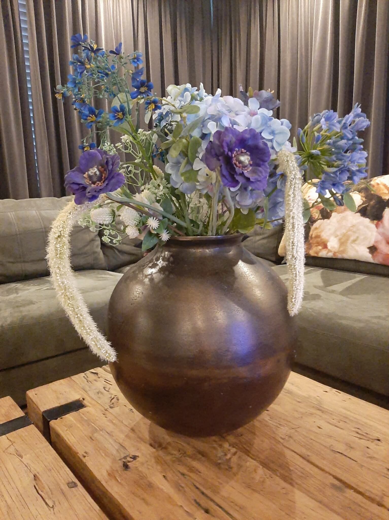 Geef uw kamer of lounge een unieke moderne uitstraling met de prachtige aluminium vaas van het merk Colmore. Deze Vaas is een perfecte mix van onderscheidend design en sublieme stijl. Een prachtige combinatie van raw antique en koper bronzen ondergrond. De opvallende basis bestaat uit een goede mix tussen materiaal en design.