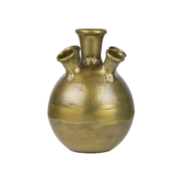 De tulpenvaas goud is een krachtig statement. Dankzij de vijf openingen kunt u uw boeketten van verse bloemen, zijde bloemen, droogbloemen of pluimen op een speelse manier verwerken. De vaas is gemaakt van aluminium en dankzij zijn afwerking heeft het een ambachtelijke look. Dankzij zijn unieke vorm is het een prachtig pronkstuk van zichzelf.