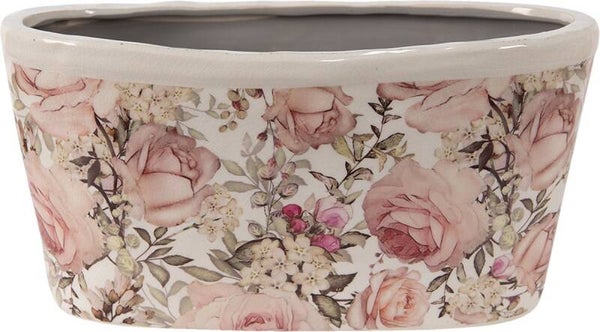 Clayre & Eef Bloempot 27x13x14 cm Roze Keramiek Bloemen
